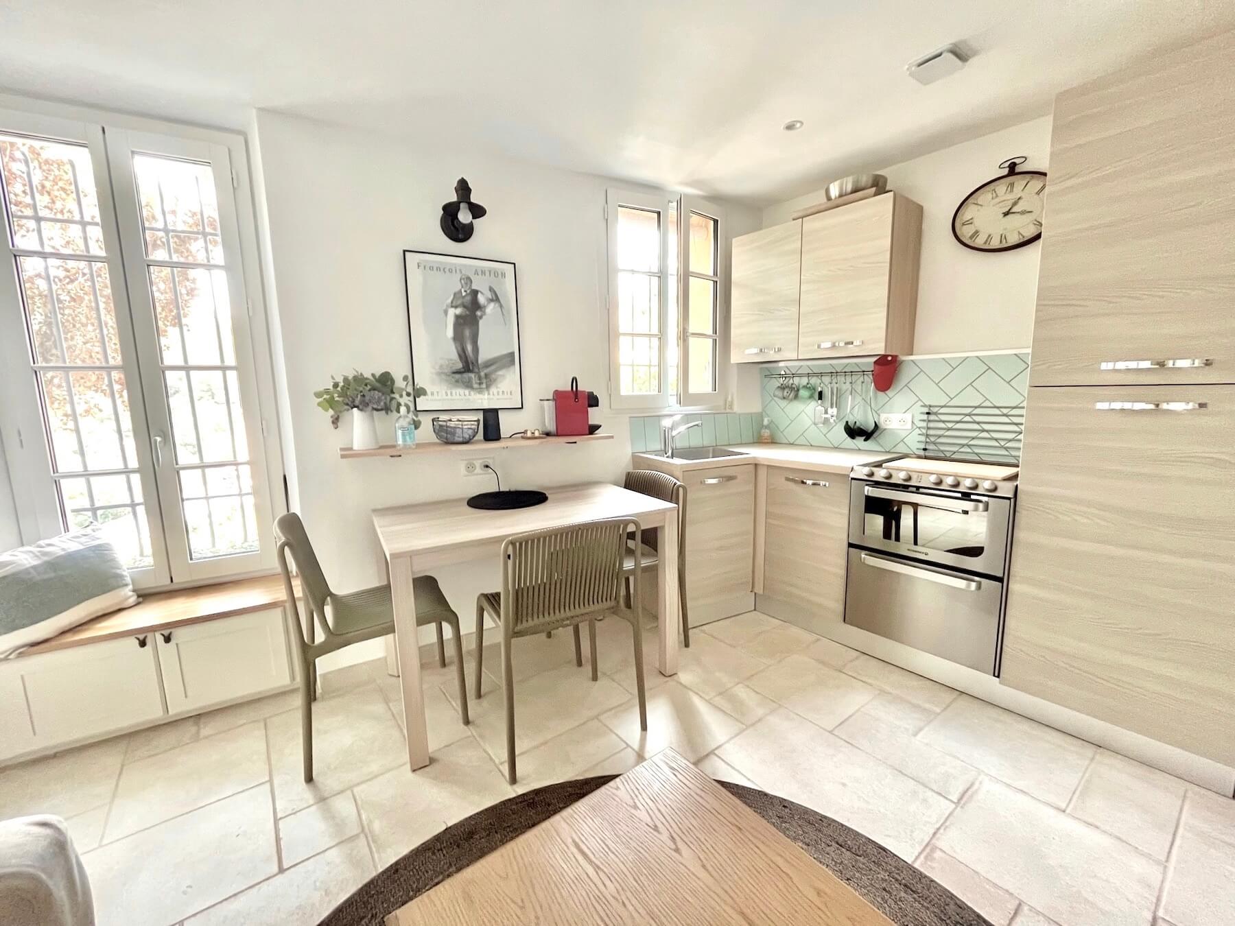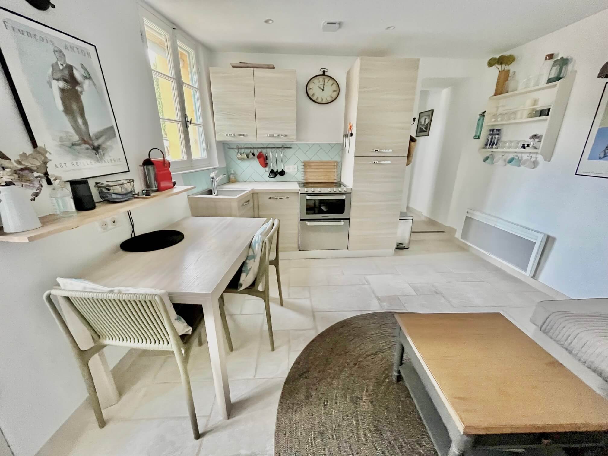 La Pitchina (36m2) is located on one of the village’s main streets, so you can stop and unload your car at the door! Situated in a 3 storey, west facing building that is totally upgraded with one apartment per floor. In other words, La Pitchina is on one level. In detail, there is just one step between the kitchen-living room and one step between the 2 bedrooms, making it easy for those with children or those with walking difficulties. Another point is there is no property opposite, hence no vis-a-vis just an open view to the hills beyond. In fact this is unusual for a village house.